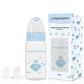 This 125ml Feeding Bottle by MAMA JAMA is spill-proof and designed for hassle-free feeding with an ergonomic grip and a tight-seal cap. Its anti-colic valve reduces air intake, ensuring your baby's comfort. The cheerful color makes it more attractive for kids. Made from BPA-free, food-grade glass materials with a soft silicone teat, it features a spoon for easy feeding and a smooth flow, making feeding safe and effortless.